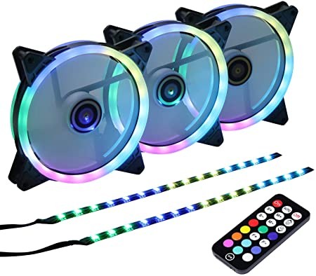 DS 140MM RGB LED Fans with controller for CPU Cases (3 Pack) (2 Pack LED Strips)